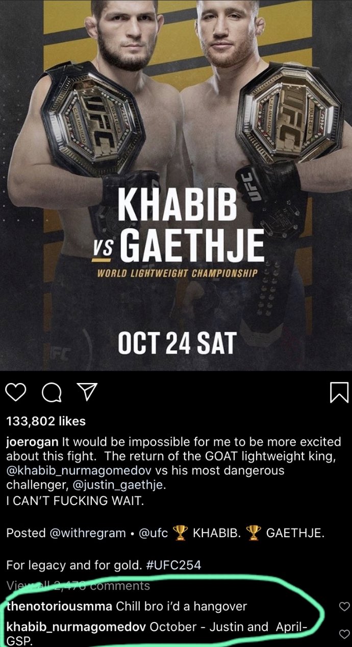 Ufc On Bt Sport On Twitter October 2020 Gaethje April 2021 Gsp Khabib Slid Into Joe Rogan S Instagram Comments To Lay Out His Plans